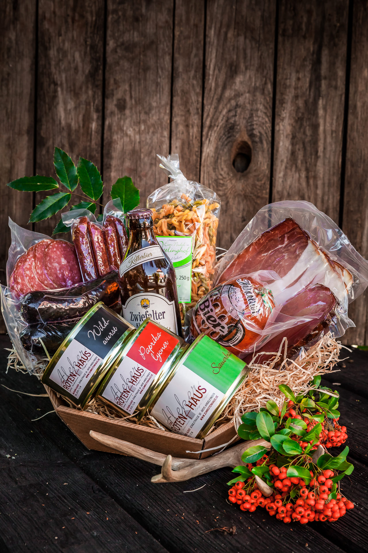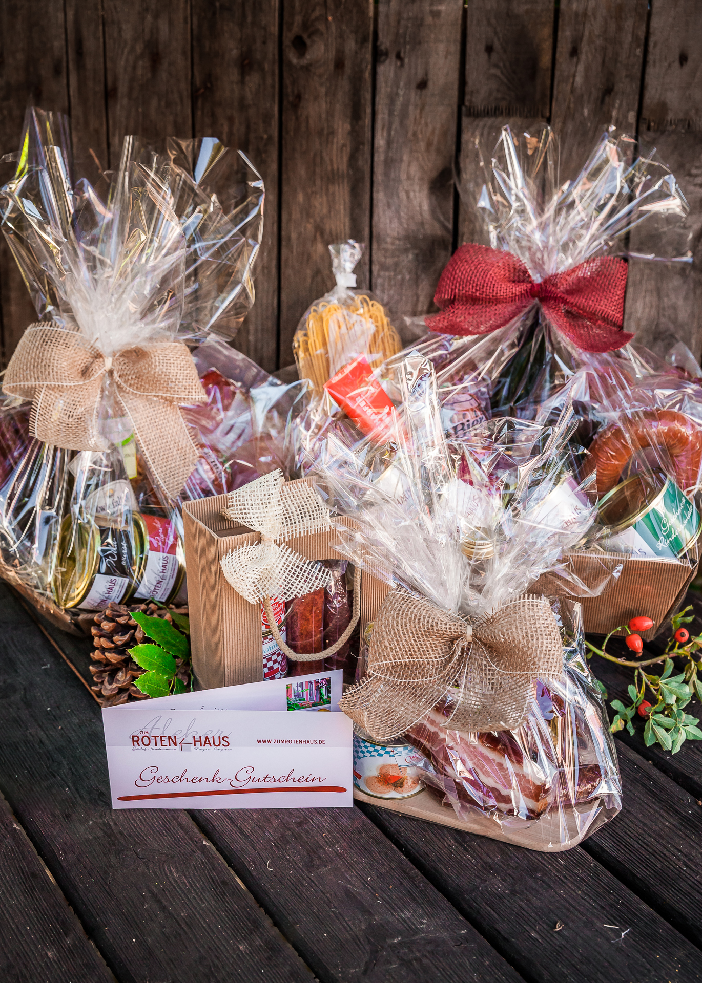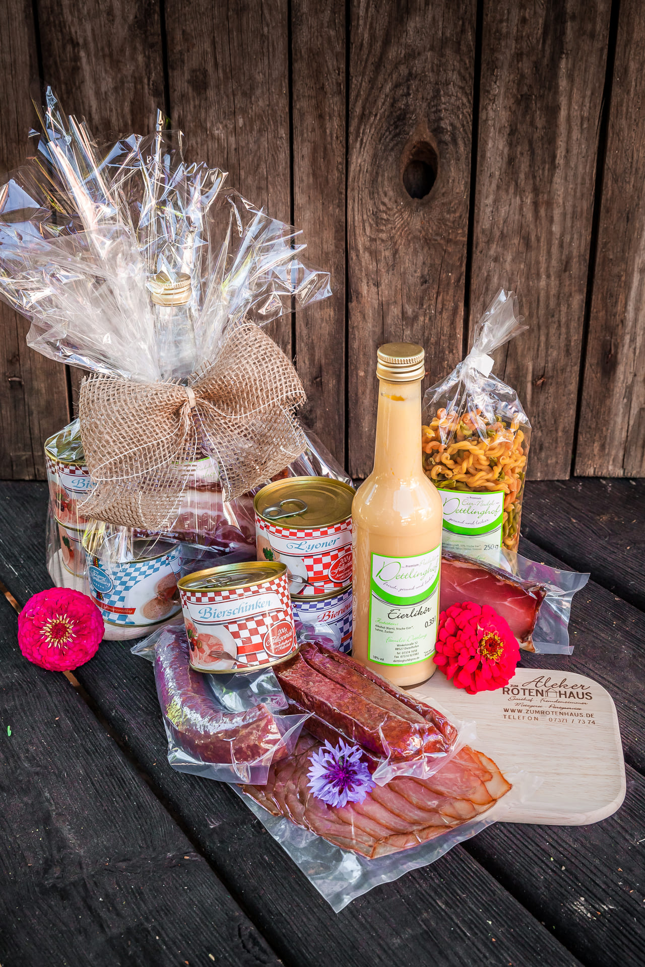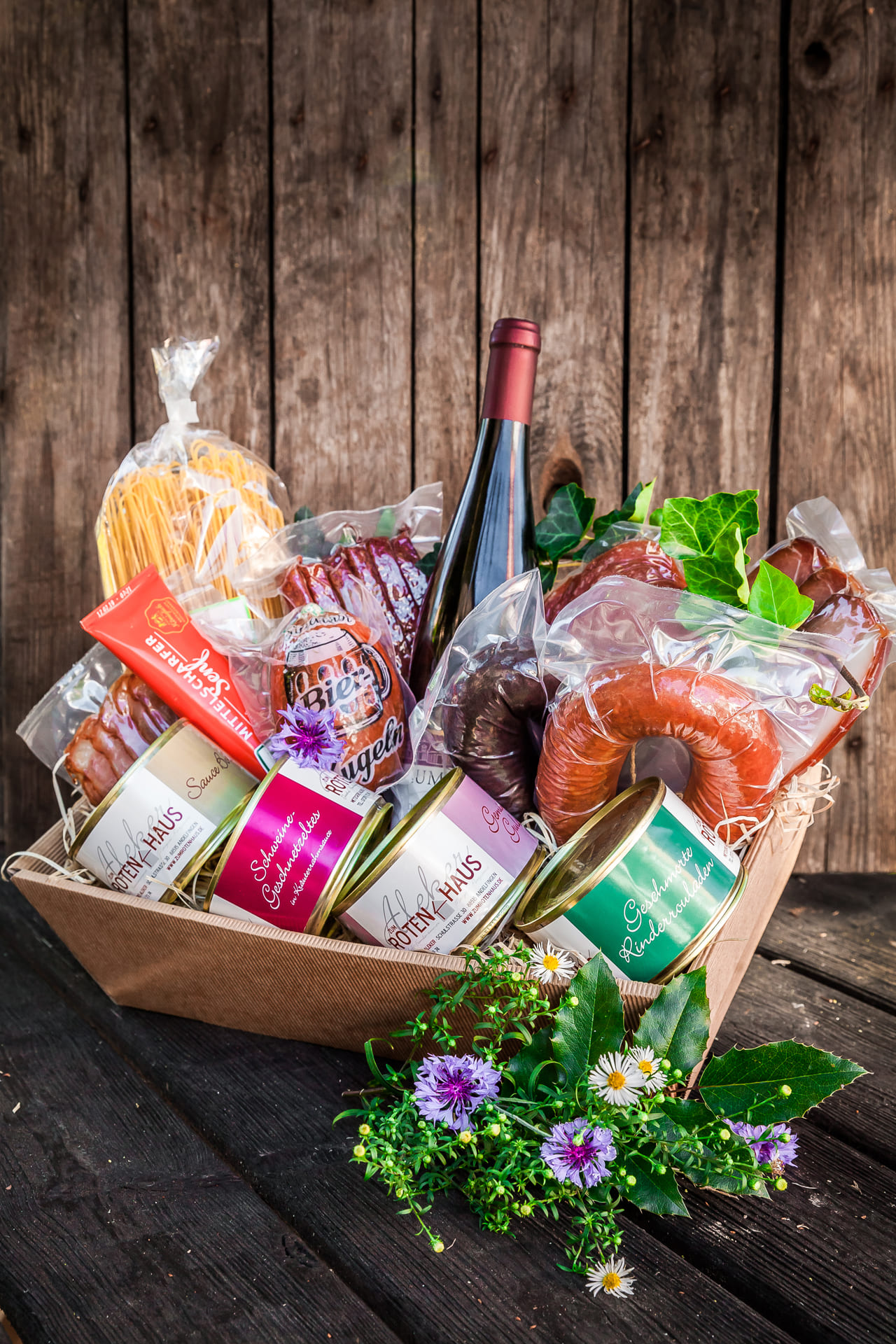 Wie wäre es mit einem Geschenkkorb? Gefüllt mit lauter Leckereien, die wir mit viel Liebe und traditionellen Rezepten hergestellt haben.